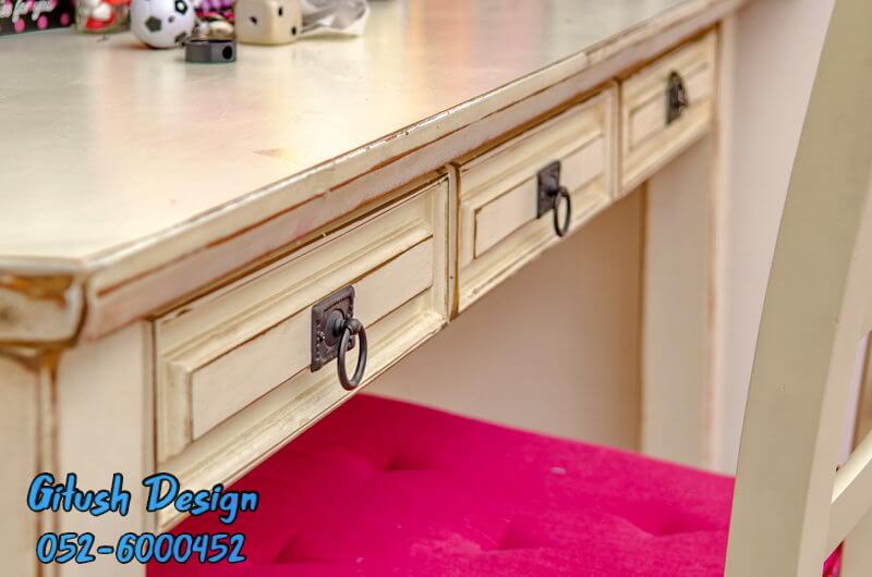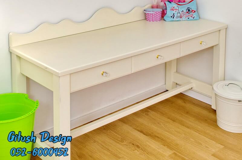 שולחן כתיבה לחדר ילדים בהתאמה אישית עם רגליים מרובעות וכן קושרת בין הרגליים ליציבות ועמידות. כמו כם קרניז עליון מעוצב.