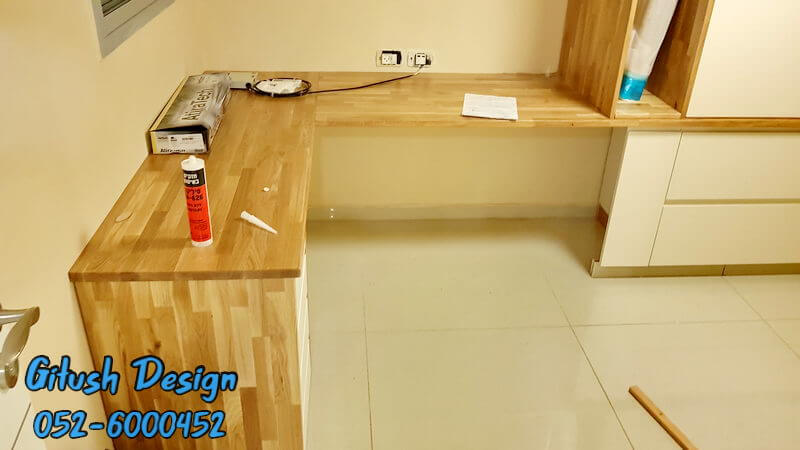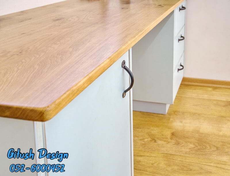 שולחן עבודה פינתי בהתאמה אישית מעץ אלון בוצ'ר וכן צביעת לכה טבעי